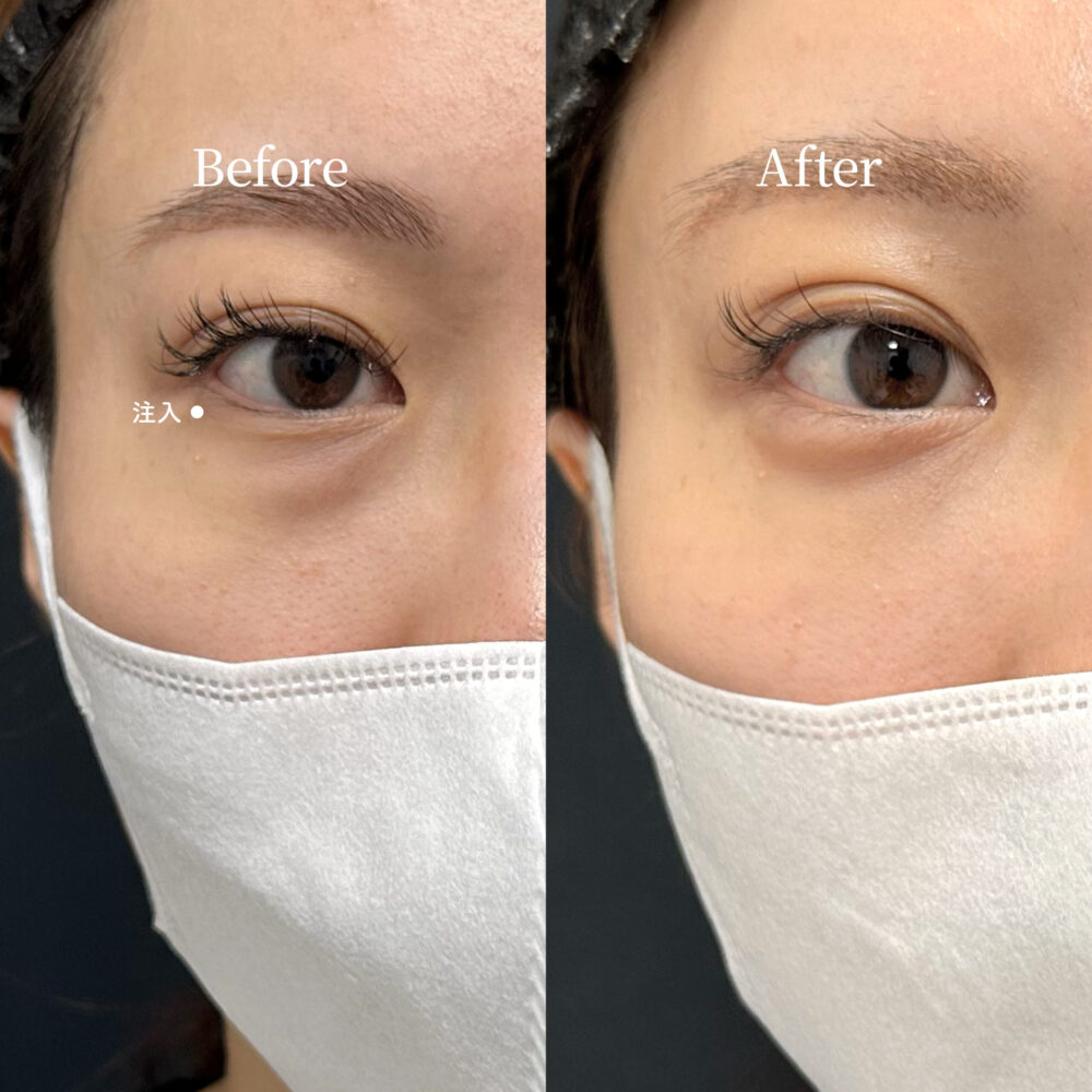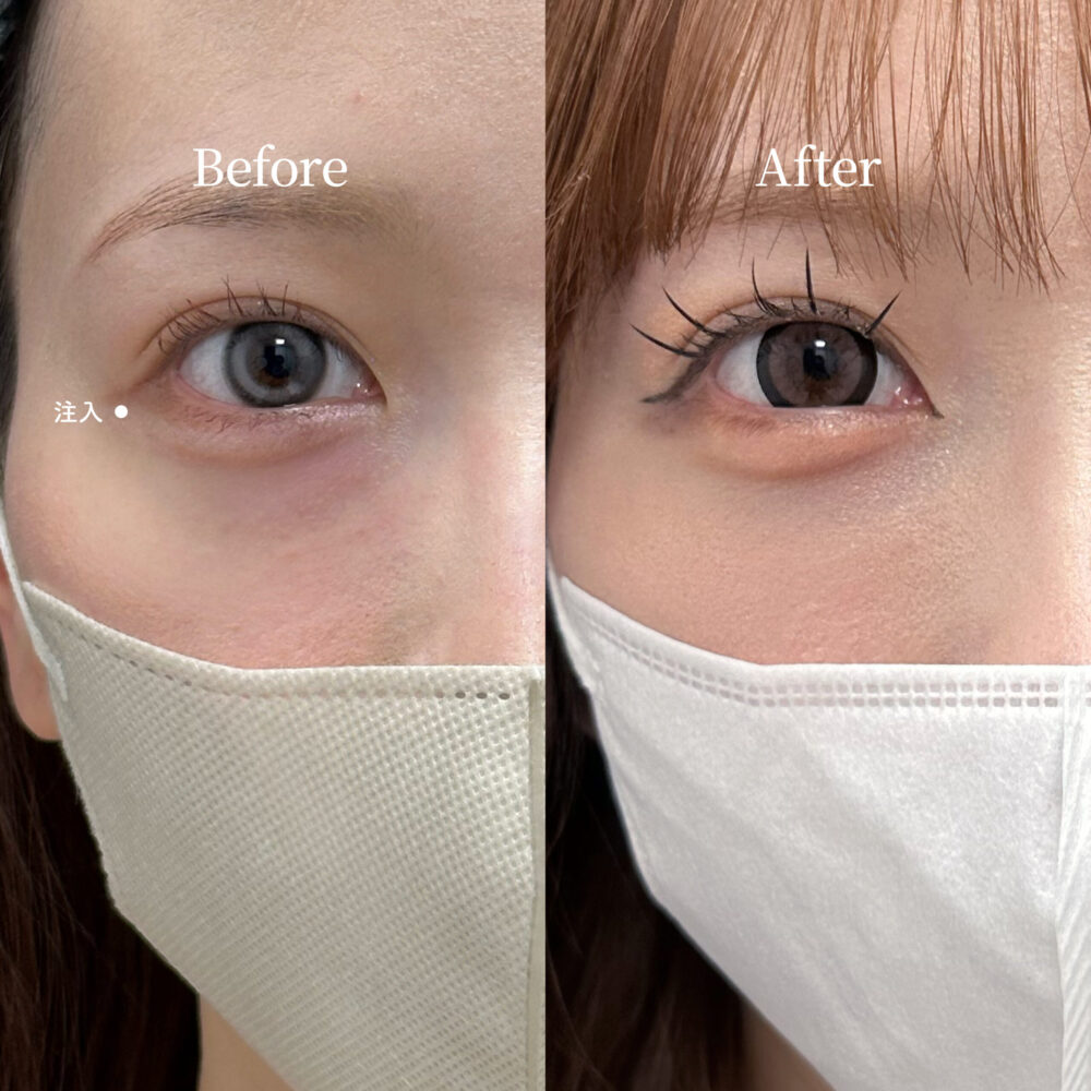 ジェル状の製剤を注射器で涙袋に注入し、物理的に皮膚を持ち上げてボリュームを出します。