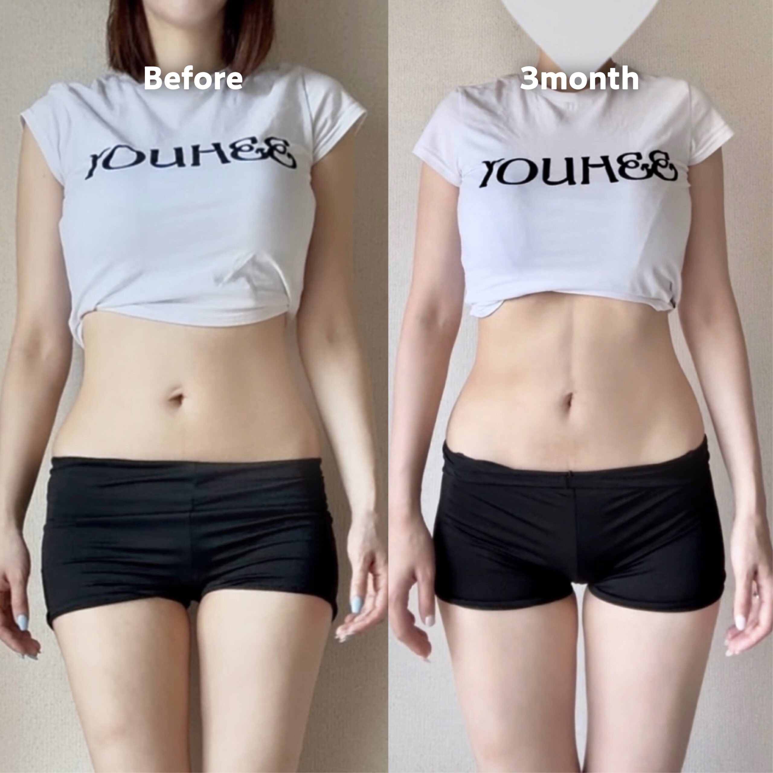 お腹の脂肪が減り、縦線が入るようになっていることが分かります。この縦線に関しては脂肪の吸引時に形成しているもののため「くっきりが良い」「薄めがいい」などのご要望に合わせて調整することが可能です。こちらのお客様は薄めの縦線を形成しております。