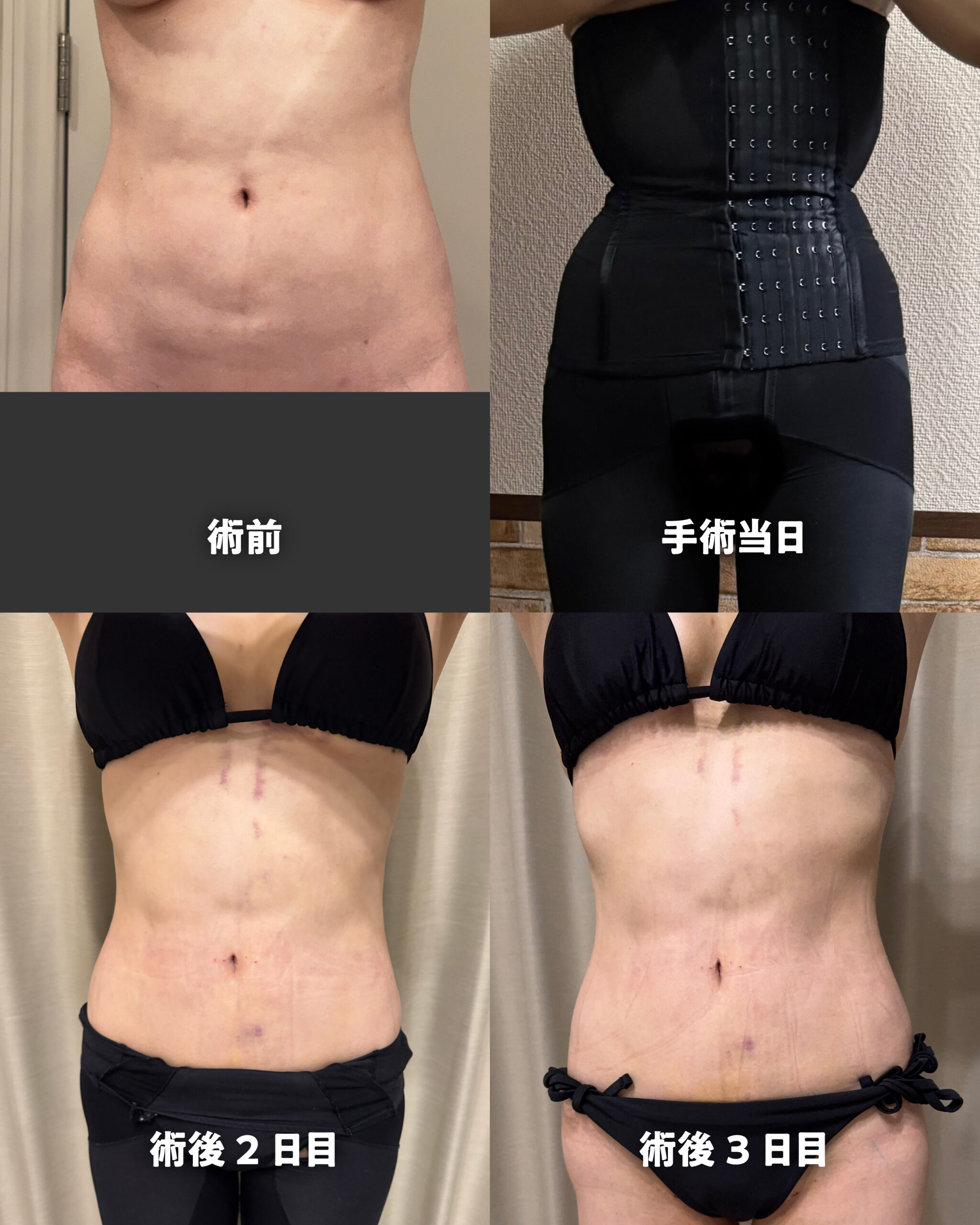 今回の記事では、症例写真と施術の詳細について、写真を用いて詳しく説明させて頂きました。私のお腹の脂肪吸引は、ダウンタイムを軽減するための様々な工夫を施し、最短で仕事などへ復帰できるようにしております。