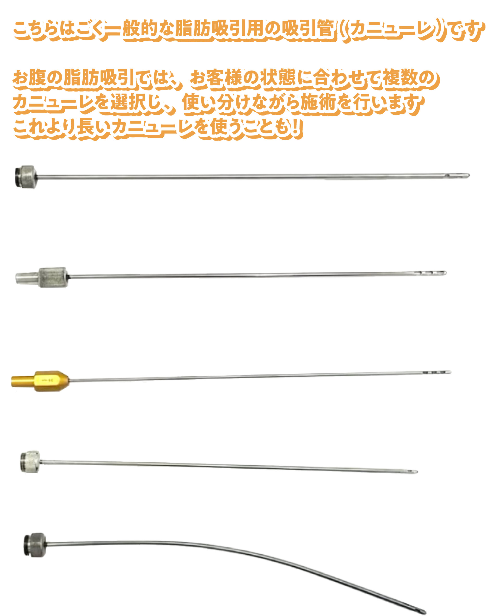 松田医師は脂肪を吸引する部位に合わせて様々な吸引管を使い分けています。