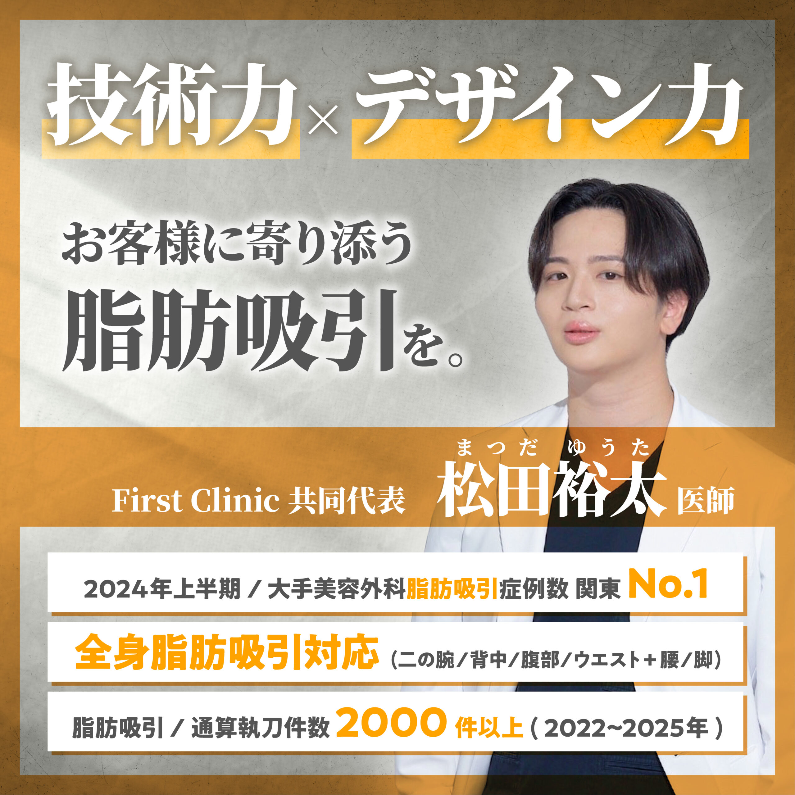 “徹底的にこだわるオーダーメイド脂肪吸引名医”としてSNSからの指名多数!確かな経験と技術力で東京、関東にとどまらず全国から予約が殺到中!次世代の脂肪吸引ドクターの人気の理由や、松田医師の美しい症例写真をお確かめください。