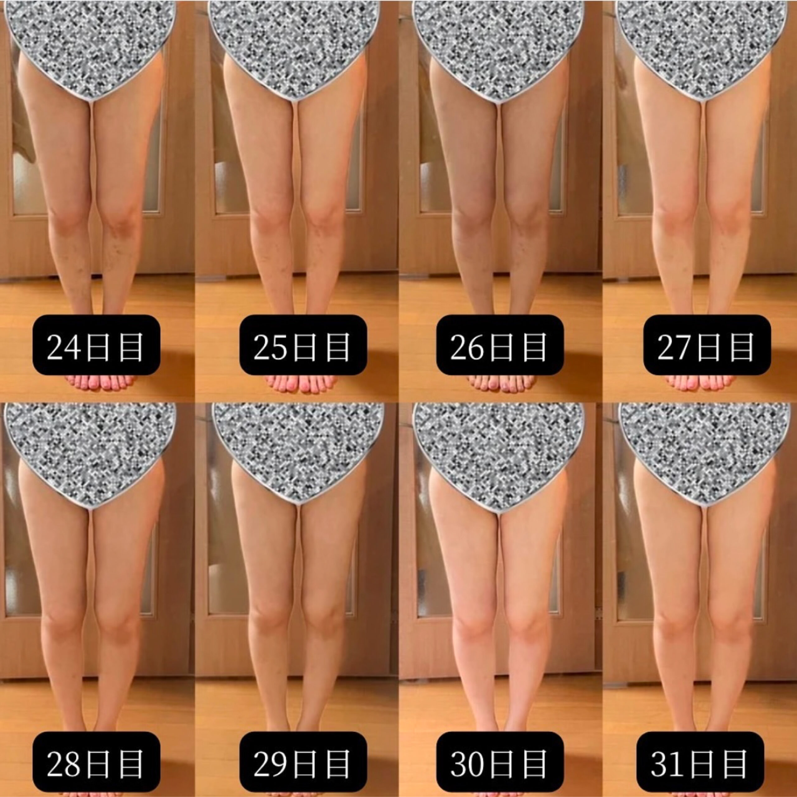 内出血がかなり改善し、少しづつ細さを実感できる時期です。「朝は気にならないけれど、夕方になると浮腫が気になる」という方が多いため